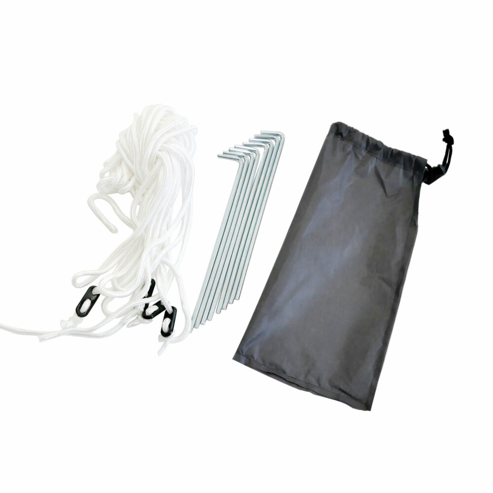- Lieferumfang: Arbeitszelt, Tragetasche, Heringe und Abspannseile
